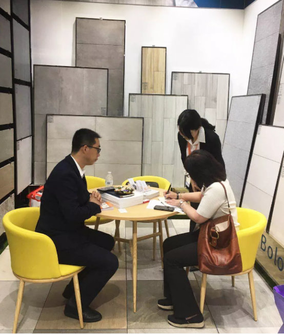 來自全球各地的客商,紛紛來到天欣科技×佛諾倫莎的展館參觀與洽談貿易合作,對于天欣科技在仿古磚的質感和花色上,以及對于代表目前國內高水平的2cm厚磚,客戶給予了充分的肯定,我們也再一次向世界展現了“CHINA”的力量。