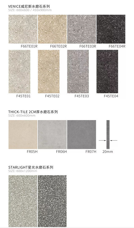 5、設計理念:2019春季,佛諾倫莎隆重推出900×900mm、600×1200mm兩大黃金規格系列新品,通過多色多面多質感的設計手法,采用5V工藝和特質的釉料配方,傾力打造集拋光面、柔光面、半拋面、自然啞光面四種不同的表面質感產品,花色以大理石紋為主,同時涵蓋水泥質感、水磨石等,顏色以不同深度的灰色為主,同時搭配經典的米黃色、大地色等,整體風格現代簡約,適應各種空間的不同風格應用,以滿足FRLS現有[工程 · 出口 · 家裝 · 設計師]渠道的需求。