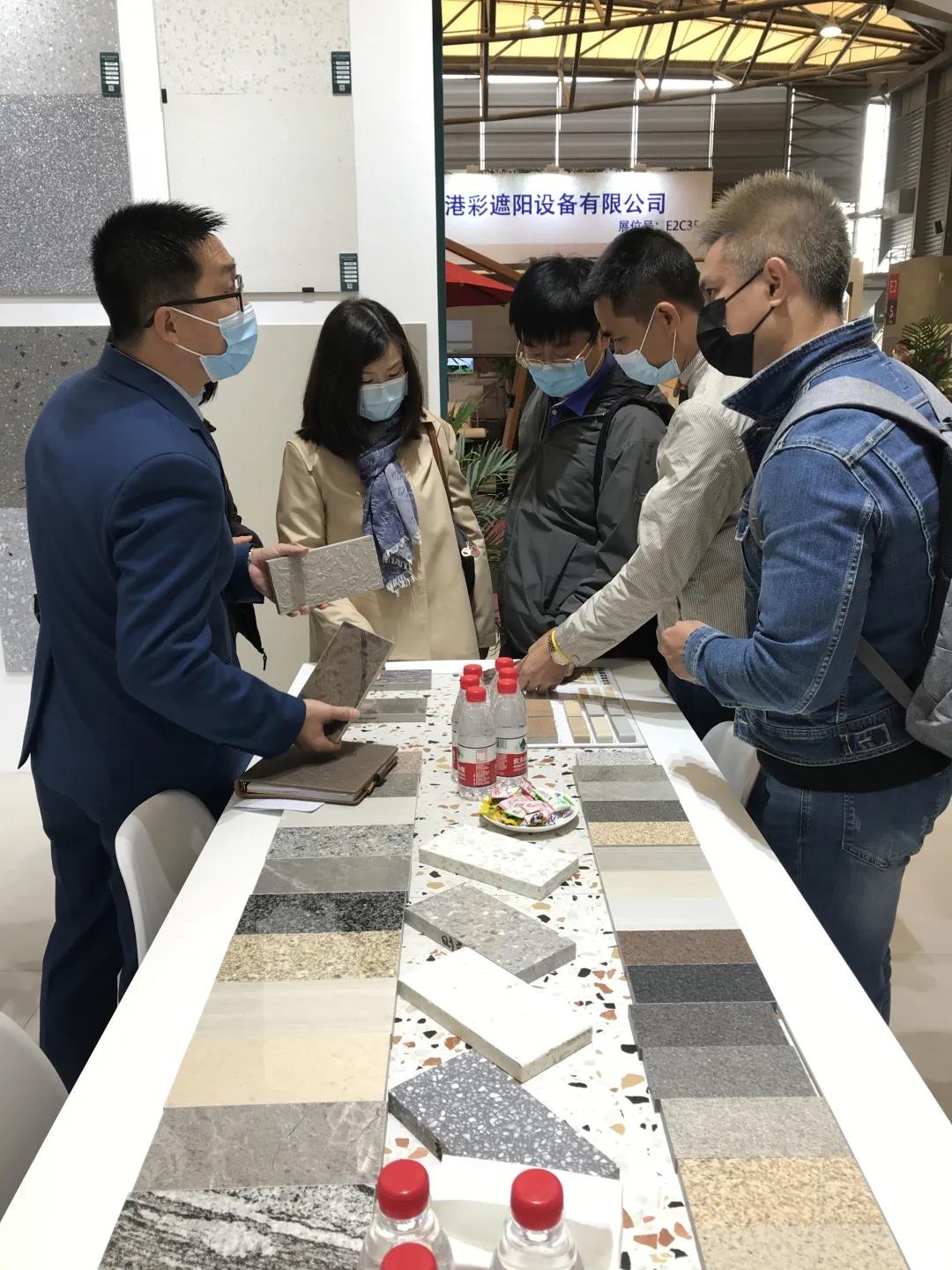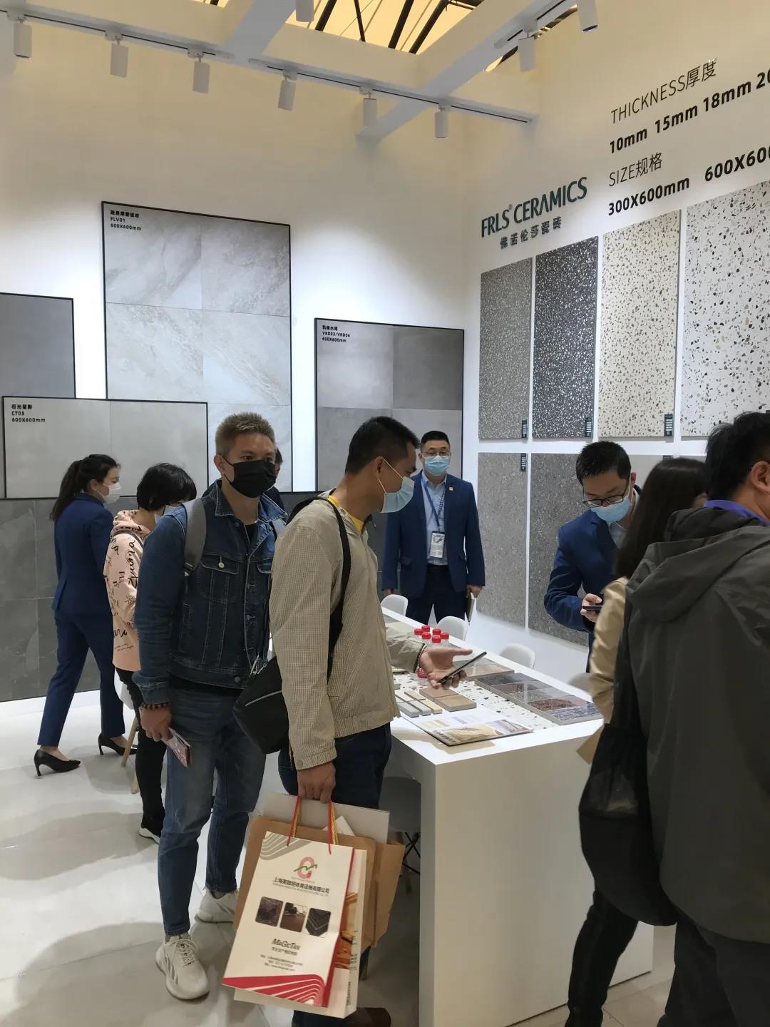 此次上海國際酒店工程設計與用品博覽會,佛諾倫莎瓷磚重點展出了18mm高光面戶外園林厚磚、水磨石瓷磚、水泥瓷磚等現代仿古磚系列,迎來全球各地的客商朋友參觀和合作洽談。